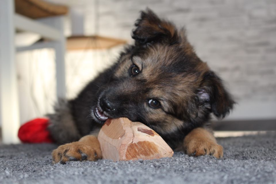 süß und frech – das beschreibt meine Akira ziemlich gut. Akira ist eine Schäferhund-Chihuahua Hündin und am 23.03.19 geboren. Mit 8 Wochen kam sie zu uns und hat ab diesem Zeitpunkt unser Leben bereichert, verändert und manchmal auf den Kopf gestellt. „Ab jetzt gehen wir jeden Schritt zusammen“ das ist der erste Gedanke, den man haben sollte, wenn man sich einen Hund anschafft. Allein dieser Gedanke hat mich überglücklich gemacht – wer mich kennt, weiß dass mein Motto lautet: „Ein Leben ohne Hund ist möglich, aber sinnlos“. Trotzdem muss man sich gut überlegen, ob der Alltag einen Hund bzw. auch einen Welpen zulässt. Ein Welpe ist wie ein Baby -er braucht viel Aufmerksamkeit, muss erzogen und geliebt werden. Wer diese Voraussetzungen nicht erfüllen kann – dem rate ich von einem Welpen ab. Wer allerdings denkt, dieser Situation gewachsen zu sein, dem würde ich immer wieder einen Welpen empfehlen! Es gibt kein schöneres Gefühl als das, was ich gerade erleben darf. Akira erkundet jeden Tag die Welt aufs Neue: Vögel die zwitschern, Blätter die von den Bäumen fallen, Autos, Fahrräder, Kinder, andere Tiere – all das ist neu für sie. Jede Erfahrung die sie in ihrem Welpen-Alter macht prägt sie für ihre Zukunft – es macht so Spaß dabei zuzusehen und ihr zu helfen die verschiedenen Situationen zu meistern. Sie ist natürlich noch total verspielt und liebt es einfach zu rennen und springen -hierbei ist aber trotz des verspielten Wesens Vorsicht geboten, denn zu viel springen ist nicht gesundheitsfördernd für ihre Knochen und Gelenke – trotzdem gilt: etwas Spaß muss sein! Da sie auch noch sehr tapsig ist – und mh… etwas tollpatschig… rennt sie manchmal gegen Dinge oder fällt während des Laufens hin, sie jagt ihren eigenen Schwanz und knurrt ihr Spiegelbild an. Ich bin so gespannt was uns noch alles erwartet … 🙂 Disziplin und Gehorsam fängt im Welpen-Alter an, d.h. bereits jetzt lernt sie fürs Leben.